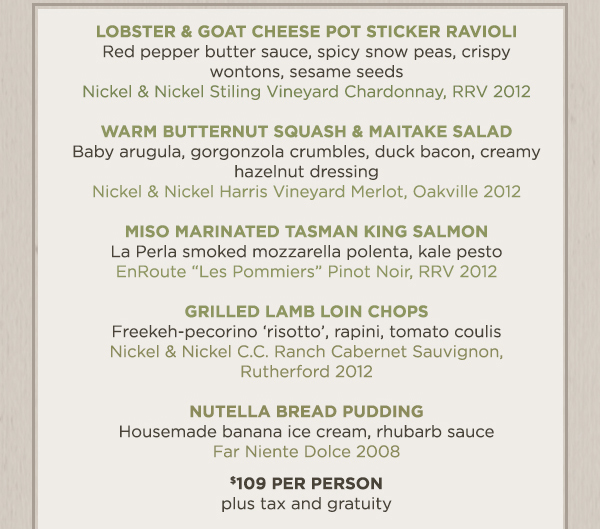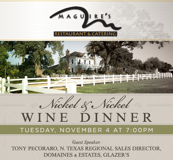 Only a few seats left for Nickel & Nickel Wine Dinner!